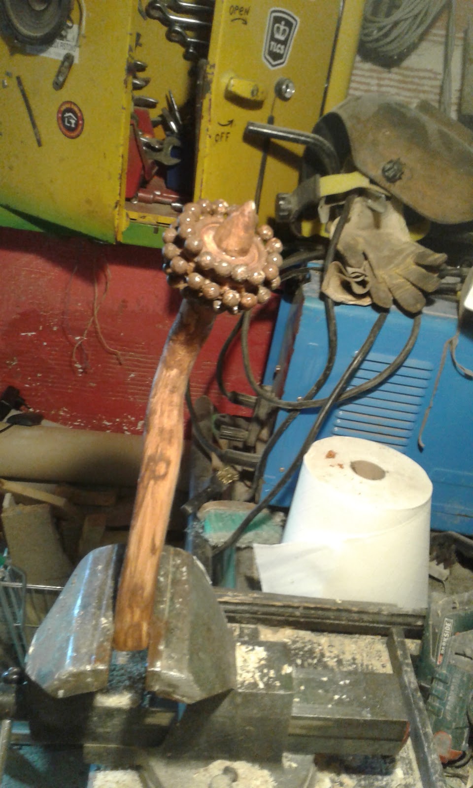 détail de fabrication de droïde star wars à l'echelle 1, de maquette en bois et d'accessoire cosplay star wars